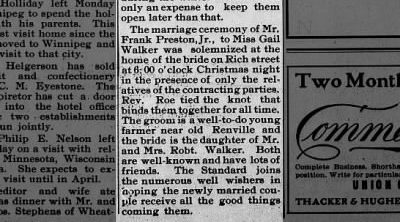 In 1906, Maggie and Robert’s daughter, Gail, married, getting a nice little write-up in the Bottineau Courant.